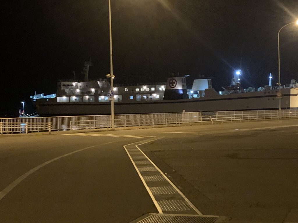 荷物を広げているうちに、船は静かに青森港を離れ、津軽海峡を越える旅が始まりました。函館到着は朝の6時20分。夜の海を渡りながら、私は静かに眠りに落ちていきます。