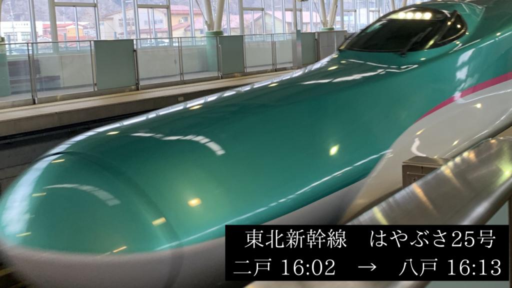 旅のスタート地点は、岩手県のJR二戸駅。ここから新幹線「はやぶさ25号」に乗り、東北新幹線で一駅先のJR八戸駅へ。その後、青い森鉄道に乗り換え、北の大地への入口であるJR青森駅へ向かいます。