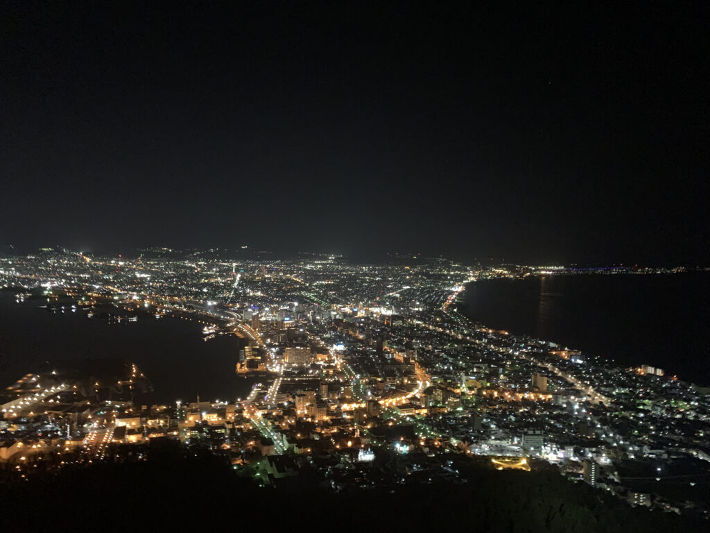 眼下に広がる景色は、まるで宝石を散りばめたかのような美しさ。無数の光が夜の函館を照らし出し、海から吹く涼しい風と相まって、心を奪われるような瞬間が訪れました。やっぱり、この景色はいつ見ても美しいです。