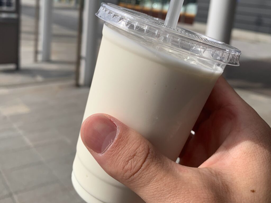 お土産屋さんを見ていると、「白い恋人シェイク」が目に留まりました。1杯350円。のどの渇きを癒すために注文してみると、甘い香りと滑らかな味わいが口の中に広がり、たった1杯で北海道の味を堪能できる贅沢なひとときでした。北海道を離れる前に、この最後の一杯を味わうことで、別れの寂しさがさらに深まってしまいました。