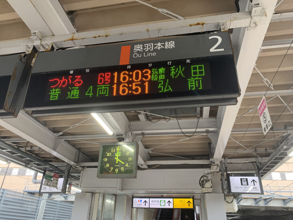 ここからは在来線・奥羽本線に乗り継ぎます。次の期待を胸に、在来線のホームへと向かいました。