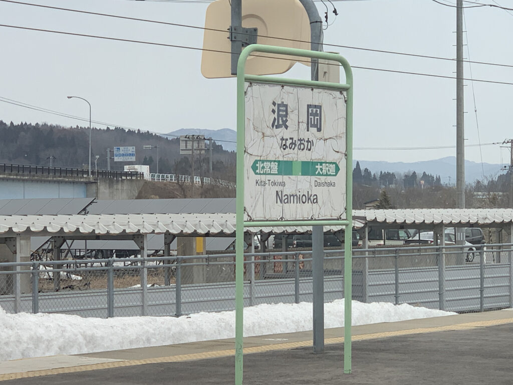 新青森を出てから約15分、列車は最初の停車駅・浪岡に到着。山を越え、かなりの距離を走ってきたかのように思えますが、ここはまだ青森市内。青森市の広さを感じます。