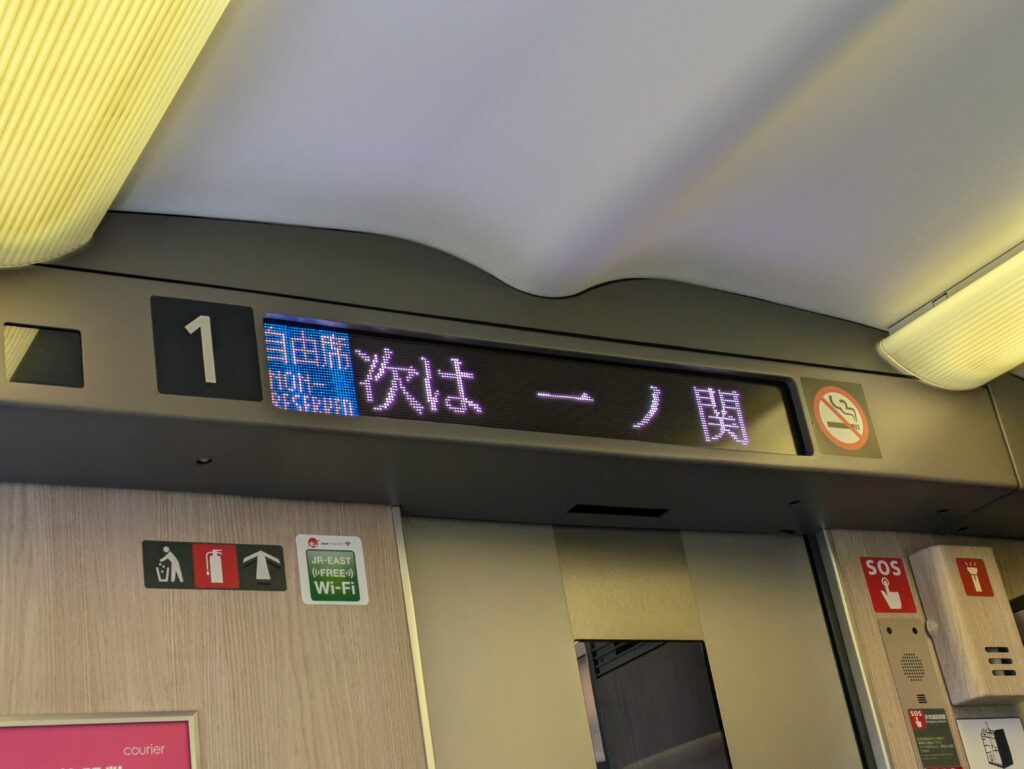筆者はここで下車しますが、一ノ関からも多くの乗車があり、自由席は全て埋まってしまいました。この先の駅から乗る人の多くはデッキや通路に立つしかなく、大変そうです。
