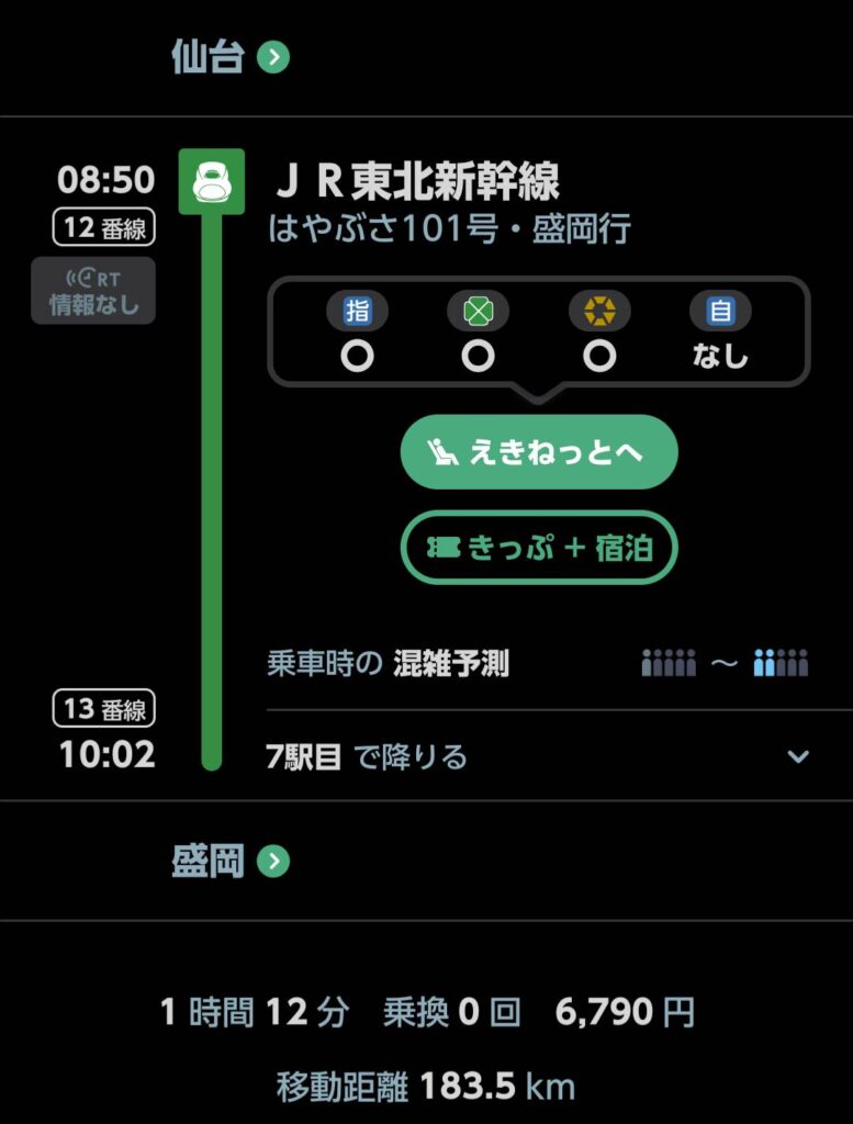 このことから、東京~盛岡を「はやぶさ」で移動する場合、